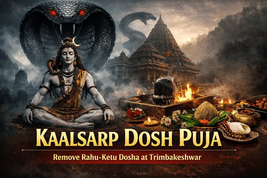 Kaalsarp Dosh occurs when all planets are positioned between Rahu and Ketu, creating obstacles, delays, and instability in life. This powerful Vedic ritual at Trimbakeshwar Jyotirlinga Temple helps neutralize negative planetary effects and brings peace, success, and spiritual growth.