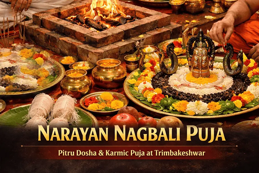 Narayan Nagbali Puja is a sacred 3-day ritual performed to remove Pitru Dosh, ancestral curses, and unresolved karmic issues affecting life progress. Conducted at Trimbakeshwar Jyotirlinga Temple, this puja ensures peace to departed souls and brings stability, prosperity, and positive transformation in life.